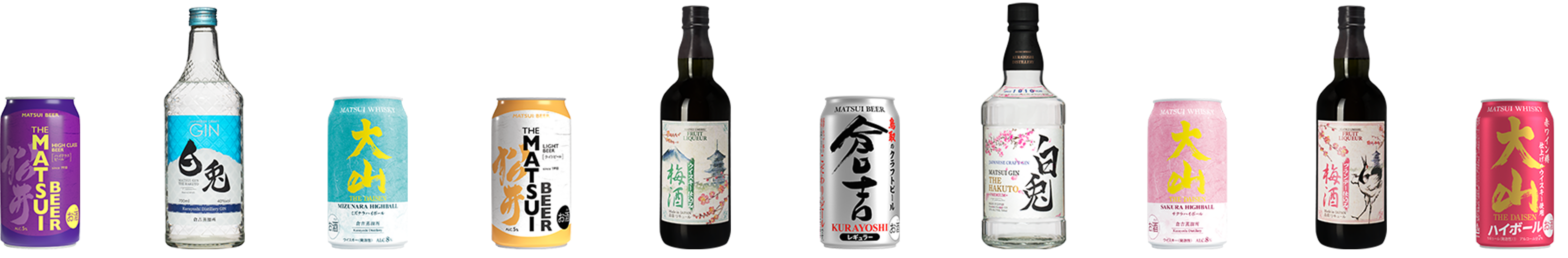 松井酒造では、ウイスキーをはじめ、ビール・ハイボール・ジン・梅酒・米焼酎など、幅広い種類のお酒を取り揃えております。